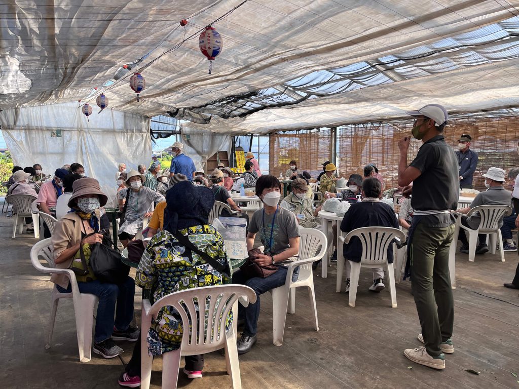 温室に戻り、茶もみの実演を行いました。多くの方が夢中でお話を聞いておられました。