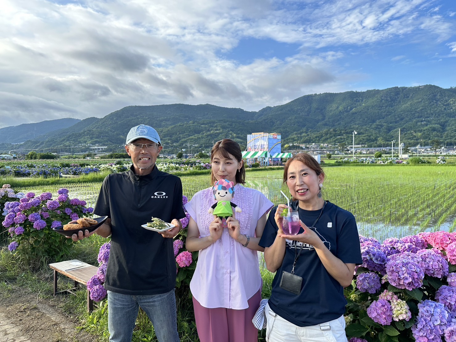 ただいま開催中の「開成町あじさいまつり」の会場から「快晴茶の天ぷら」、「足柄牛のメンチカツ」などおすすめのお祭りグルメ情報をご紹介いただきました。